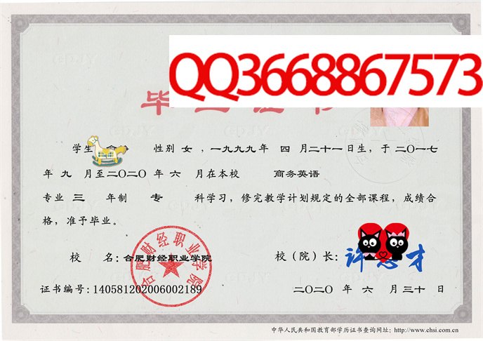 备注:本公司资料库存有合肥财经职业学院的历年成人毕业证、自考毕业证、统招毕业证样本。拥有合肥财经职业学院历任院(校)长。