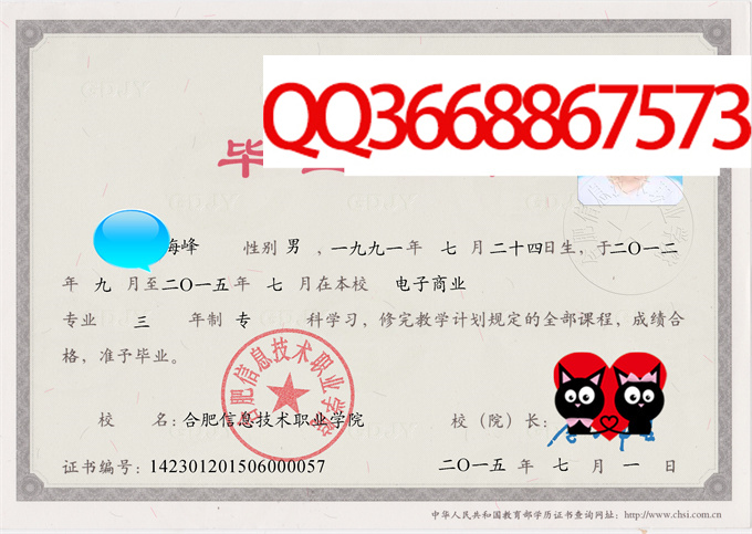 合肥信息技术职业学院成绩单毕业证档案学位证样本
