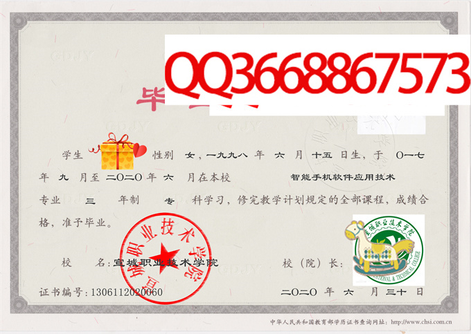 宣城职业技术学院成绩单毕业证档案学位证样本