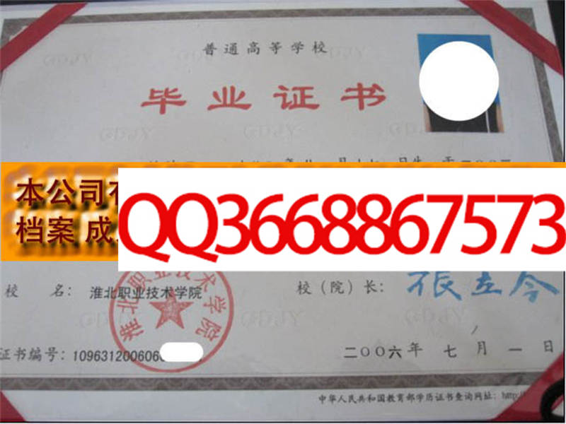 淮北职业技术学院毕业证,档案样本,学位证样本,毕业证图片