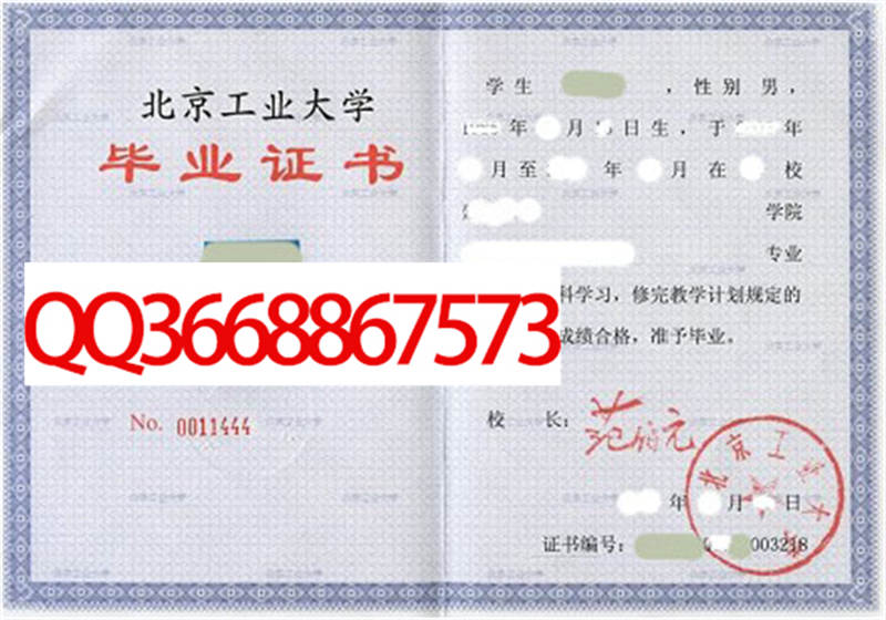 北京工业大学毕业证样本