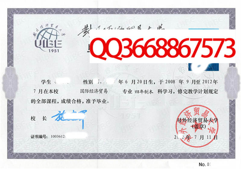 对外经济贸易大学成绩单毕业证档案学位证样本