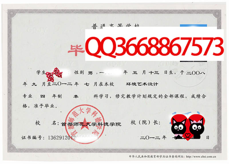 首都师范大学科德学院成绩单毕业证档案学位证样本