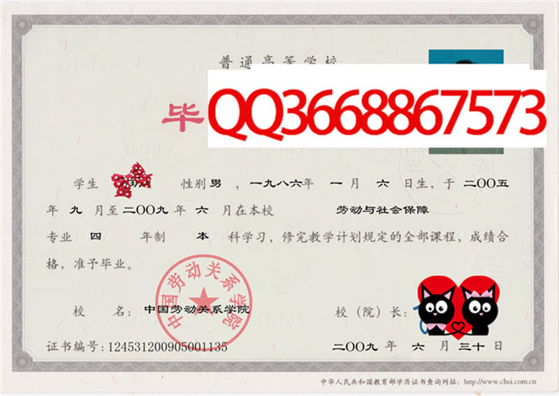 备注:本公司资料库存有中国劳动关系学院的历年成人毕业证、自考毕业证、统招毕业证样本。拥有中国劳动关系学院历任院(校)长。
