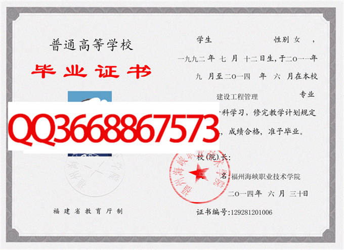 备注:本公司资料库存有福州海峡职业技术学院的历年成人毕业证、自考毕业证、统招毕业证样本。拥有福州海峡职业技术学院历任院(校)长。