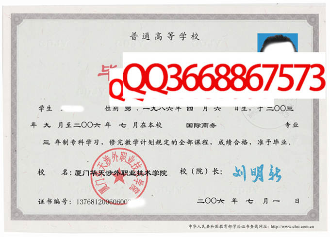 备注:本公司资料库存有厦门华天涉外职业技术学院的历年成人毕业证、自考毕业证、统招毕业证样本。拥有厦门华天涉外职业技术学院历任院(校)长。