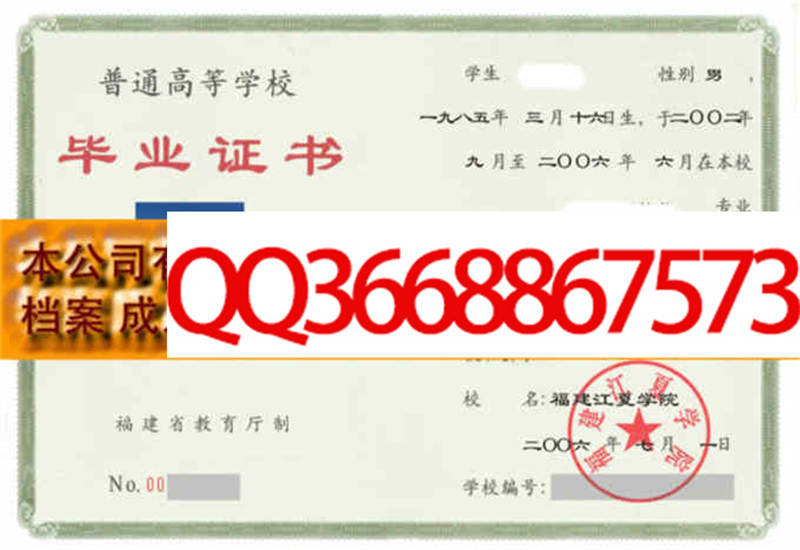 福建江夏学院毕业证样本图片