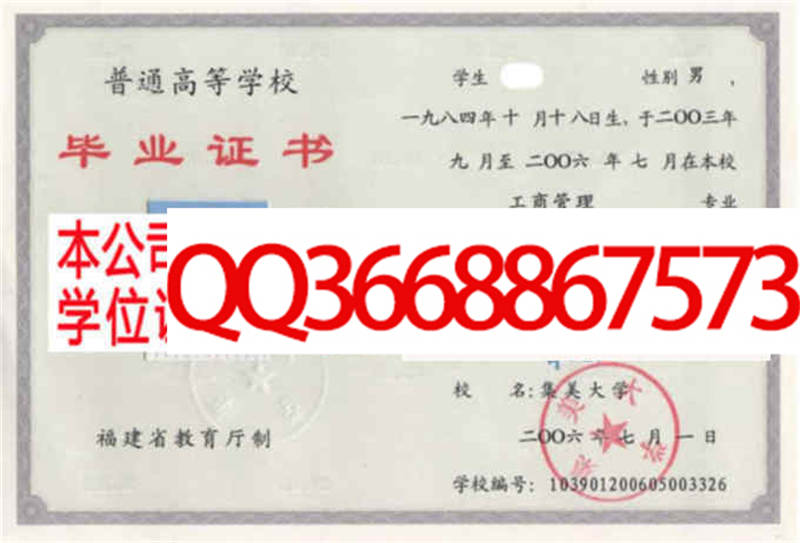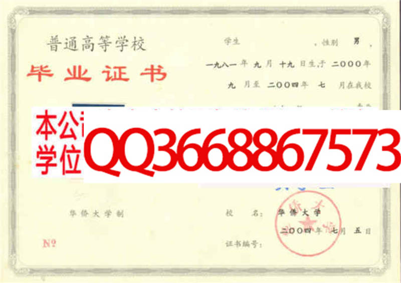 华侨大学毕业证档案样本