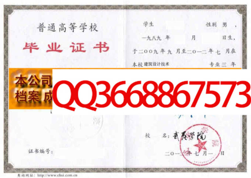 武夷学院毕业证样本