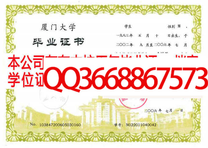 厦门大学英语四六级证书样本