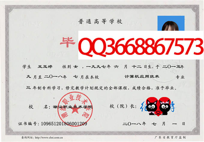 备注:本公司资料库存有潮汕职业技术学院的历年成人毕业证、自考毕业证、统招毕业证样本。拥有潮汕职业技术学院历任院(校)长。