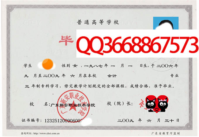 备注:本公司资料库存有广东新安职业技术学院的历年成人毕业证、自考毕业证、统招毕业证样本。拥有广东新安职业技术学院历任院(校)长。