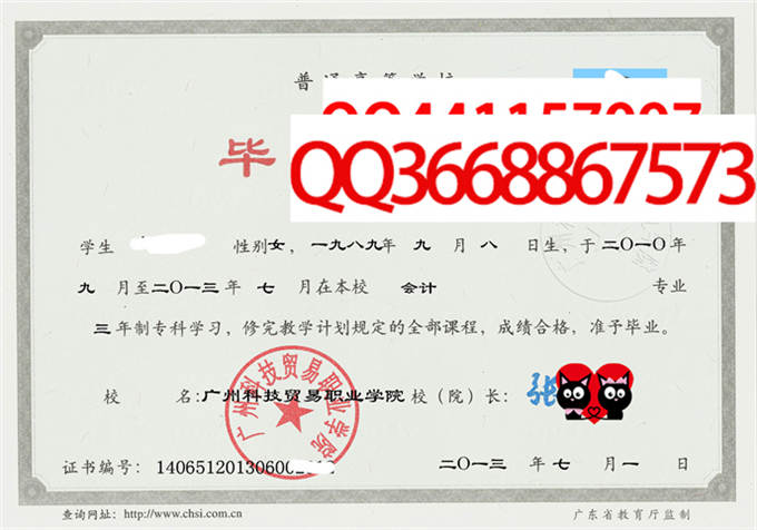 备注:本公司资料库存有广州科技贸易职业学院的历年成人毕业证、自考毕业证、统招毕业证样本。拥有广州科技贸易职业学院历任院(校)长。