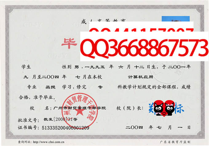 备注:本公司资料库存有广州市财贸管理干部学院的历年学士学位证、成人毕业证、自考毕业证、统招毕业证样本。拥有广州市财贸管理干部学院历任院(校)长。