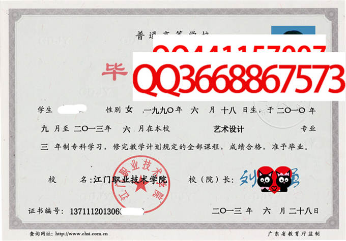 备注:本公司资料库存有江门职业技术学院的历年成人毕业证、自考毕业证、统招毕业证样本。拥有江门职业技术学院历任院(校)长。