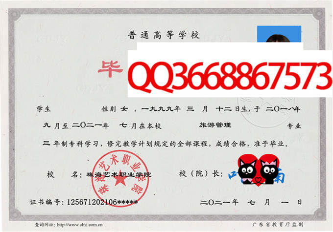 备注:本公司资料库存有珠海艺术职业学院的历年成人毕业证、自考毕业证、统招毕业证样本。拥有珠海艺术职业学院历任院(校)长。