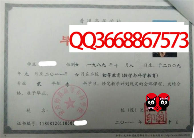 定西师范高等专科学校成绩单毕业证档案学位证样本
