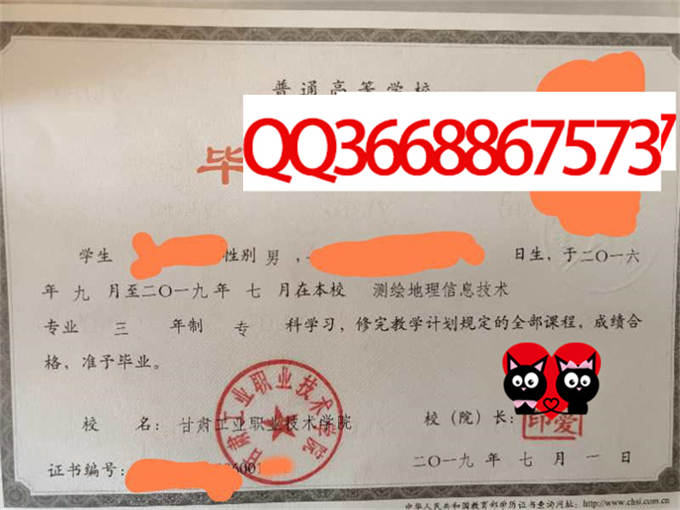 甘肃工业职业技术学院成绩单毕业证档案学位证样本