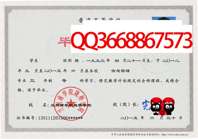 兰州商学院陇桥学院毕业证样本