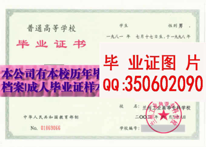 兰州工业学院毕业证样本,学位证样本,档案样本,毕业证图片,样本