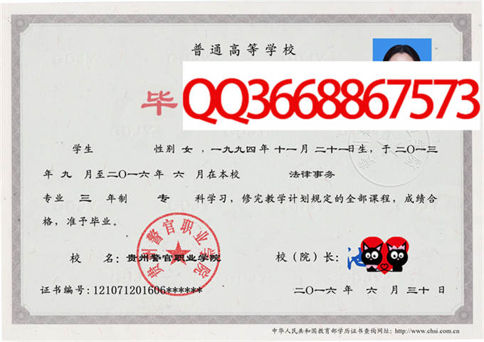 贵州警官职业学院毕业证档案毕业证样本学位证样本