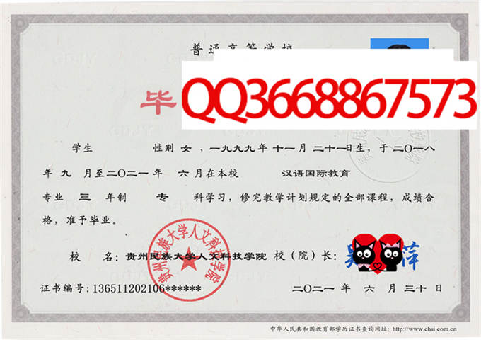 贵州民族学院人文科技学院成绩单毕业证档案学位证样本
