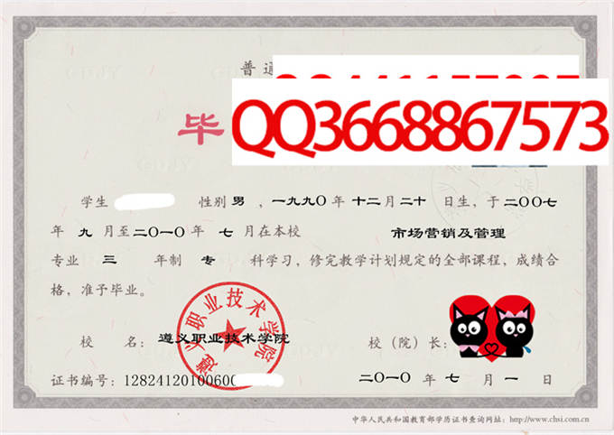 遵义职业技术学院成绩单毕业证档案学位证样本
