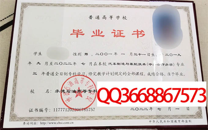 承德石油高等专科学校成绩单毕业证档案学位证样本