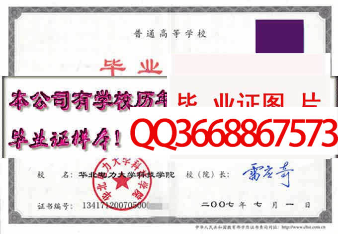 备注:本公司资料库存有华北电力大学科技学院的历年成人毕业证、自考毕业证、统招毕业证样本。拥有华北电力大学科技学院历任院(校)长。