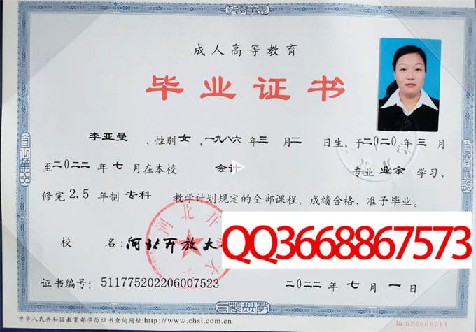 河北开放大学成绩单毕业证档案学位证样本