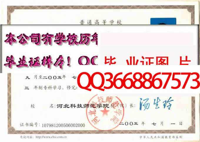 河北科技师范学院成绩单毕业证档案学位证样本