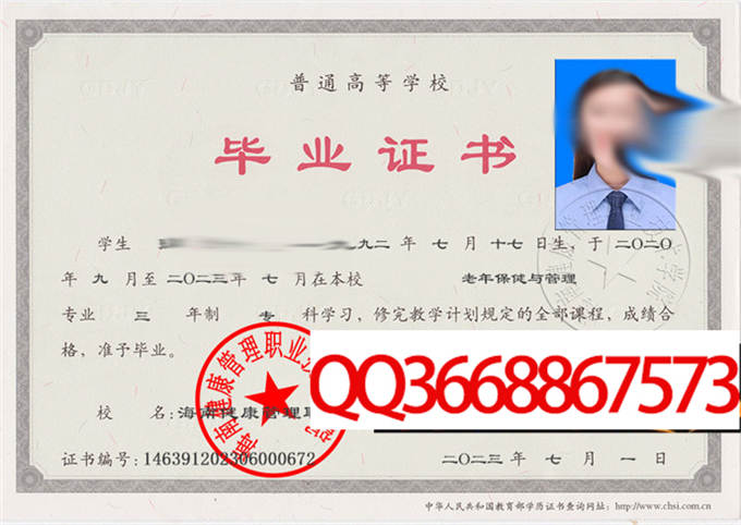 备注:本公司资料库存有海南健康管理职业技术学院的历年成人毕业证、自考毕业证、统招毕业证样本。拥有海南健康管理职业技术学院历任院(校)长。
