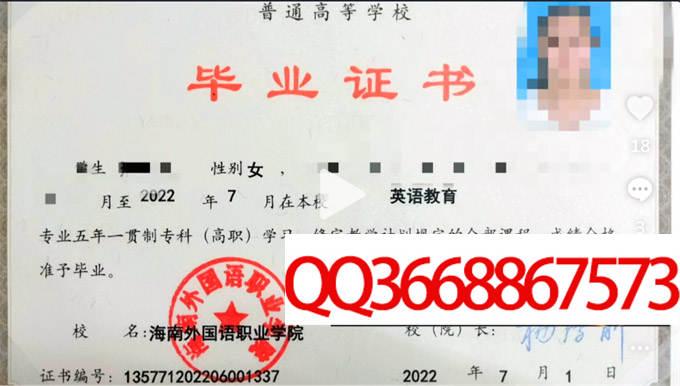备注:本公司资料库存有海南外国语职业学院的历年成人毕业证、自考毕业证、统招毕业证样本。拥有海南外国语职业学院历任院(校)长。