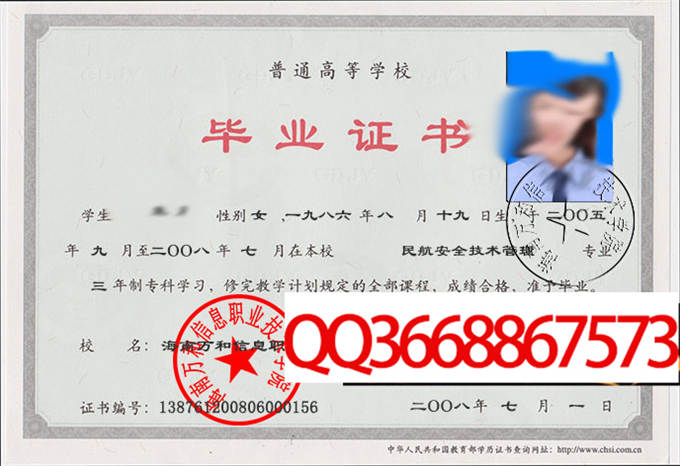 备注:本公司资料库存有海南万和信息职业技术学院的历年成人毕业证、自考毕业证、统招毕业证样本。拥有海南万和信息职业技术学院历任院(校)长。