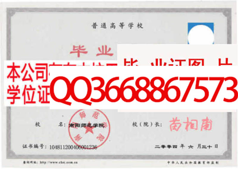 南阳理工学院学位证样本图片