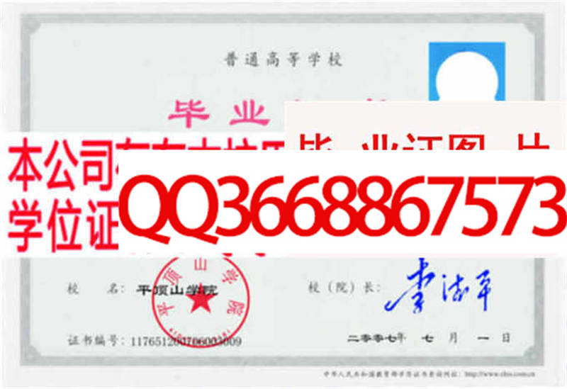 平顶山学院学位证样本图片