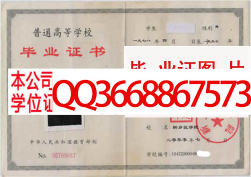 新乡医学院毕业证样本图片