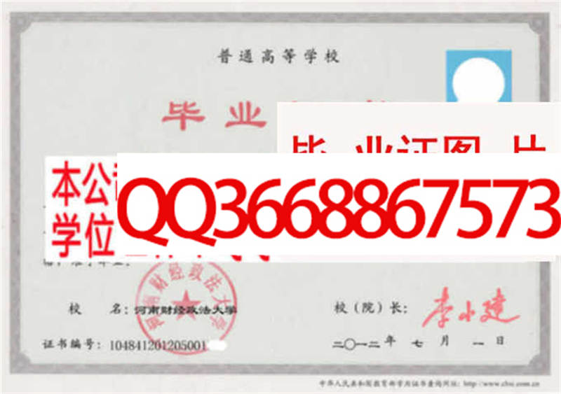 河南财经政法大学毕业证样本