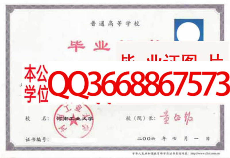 河南工业大学毕业证样本
