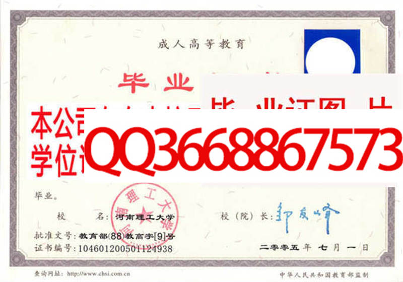 河南理工大学毕业证样本
