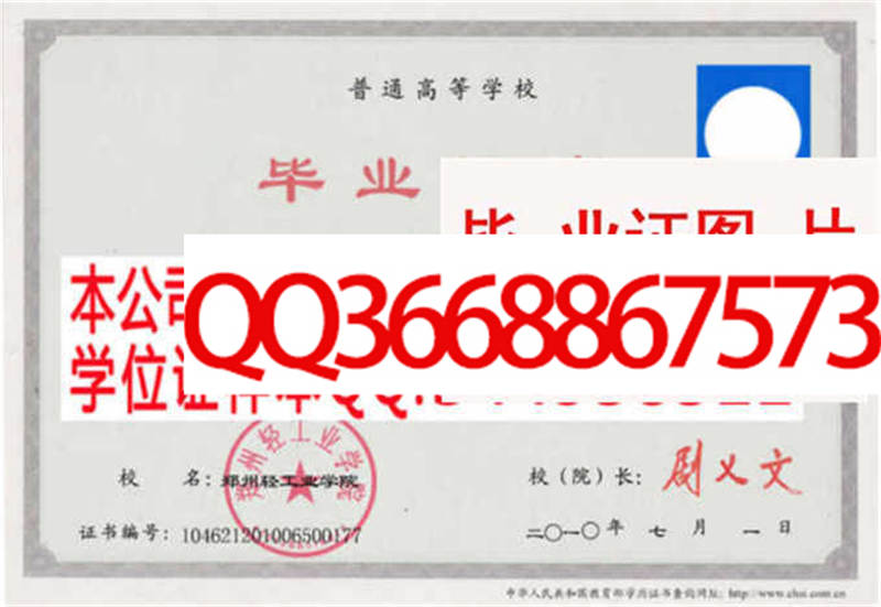 郑州轻工业学院毕业证样本