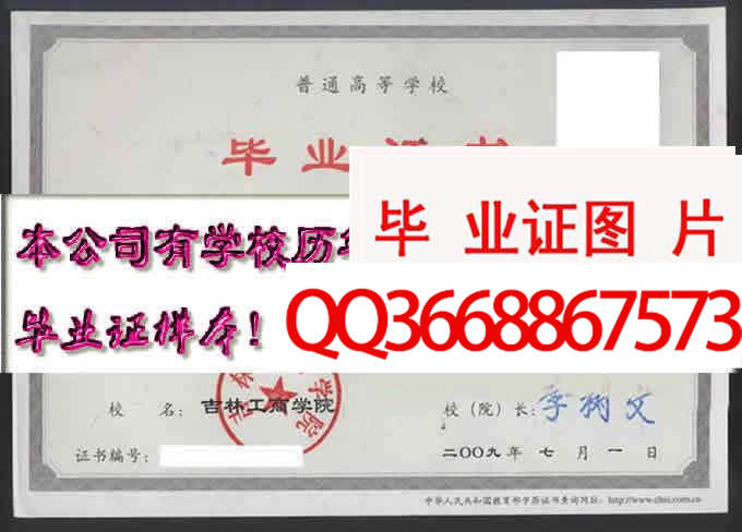 备注:本公司资料库存有吉林工商学院的历年成人毕业证、自考毕业证、统招毕业证样本。拥有吉林工商学院历任院(校)长。