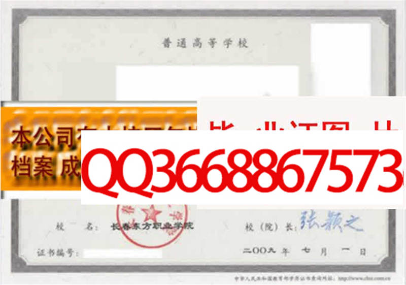 长春东方职业学院毕业证样本,学位证样本,档案样本,成人毕业证样本
