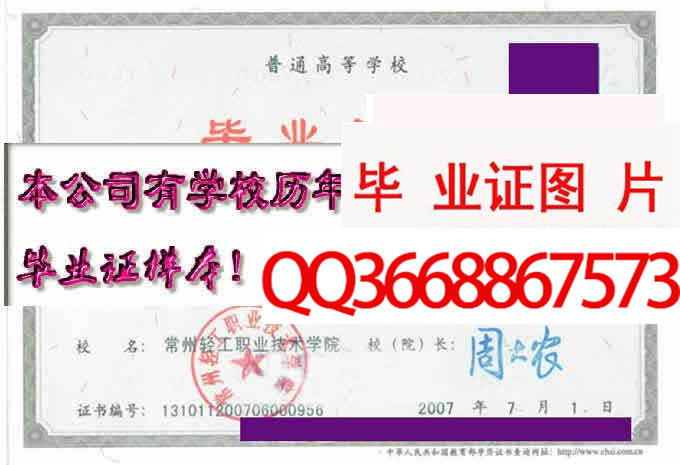 备注:本公司资料库存有常州轻工职业技术学院的历年成人毕业证、自考毕业证、统招毕业证样本。拥有常州轻工职业技术学院历任院(校)长。