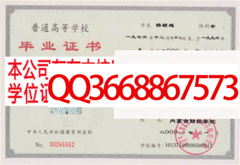 内蒙古财经大学学位证样本