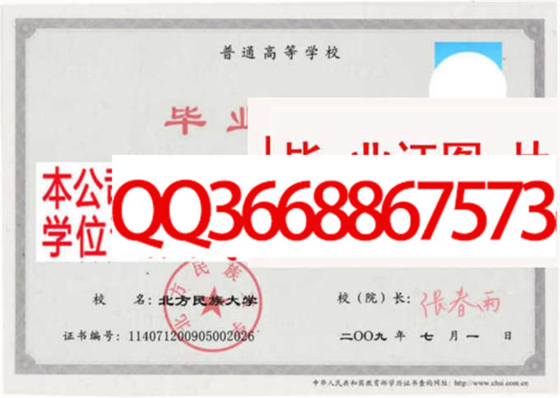 北方民族大学学位证样本校长