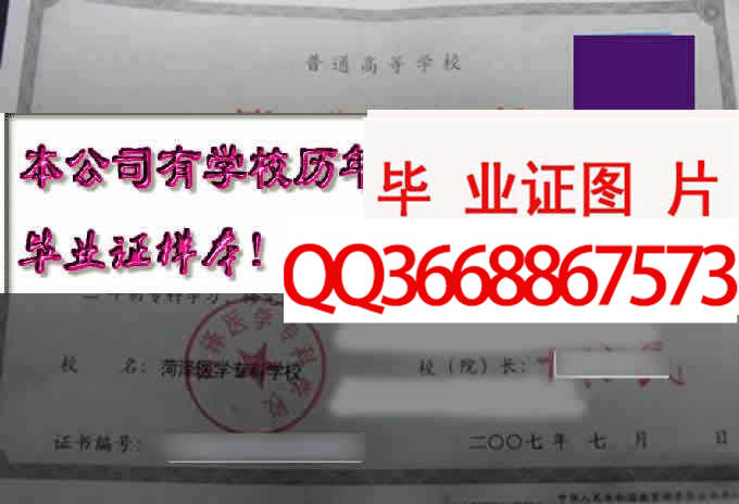 菏泽医学专科学校成绩单毕业证档案学位证样本