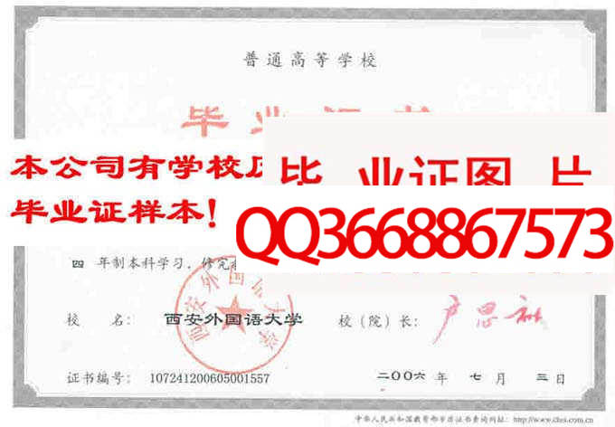 备注:本公司资料库存有西安外国语大学的历年成人毕业证、自考毕业证、统招毕业证样本。拥有西安外国语大学历任院(校)长。