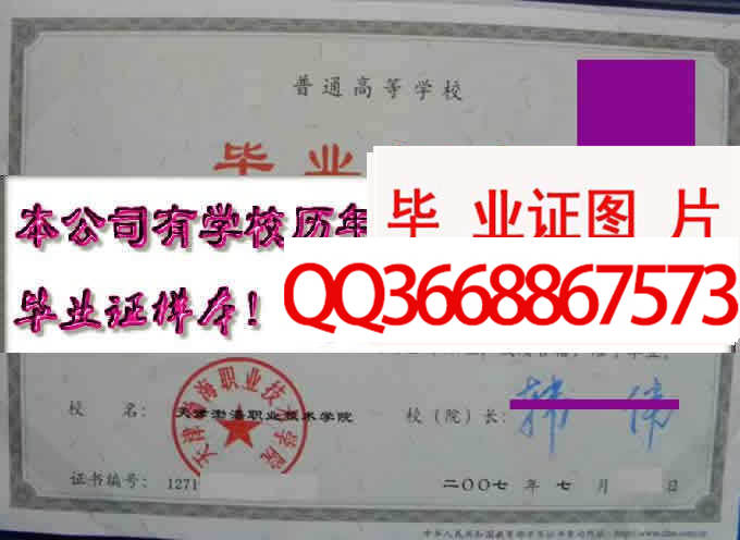 备注:本公司资料库存有天津渤海职业技术学院的历年成人毕业证、自考毕业证、统招毕业证样本。拥有天津渤海职业技术学院历任院(校)长。