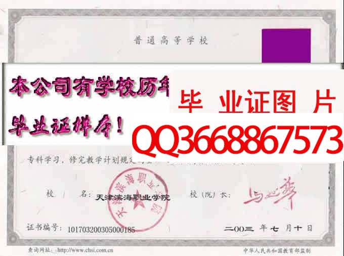 备注:本公司资料库存有天津滨海职业学院的历年成人毕业证、自考毕业证、统招毕业证样本。拥有天津滨海职业学院历任院(校)长。